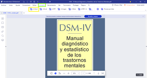 Paso 2-. Seleccionar la opción “convertir “y elegir “a Word” para comenzar a convertir.
