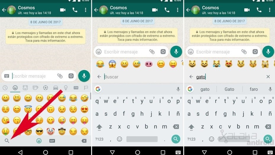 Ahora bien, ¿cómo funciona? Al pulsar en la sección de emojis, se desplegará una barra de búsqueda en donde podremos escribir una palabra, y WhatsApp nos devolverá una serie de emojis relacionados.
