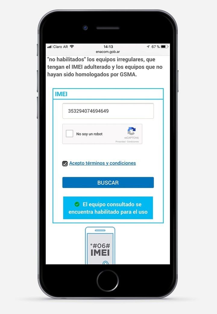 Para contrastar esta información, Enacom (bajo el ala del Ministerio de Modernización de la Nación) puso a disposición de los usuarios una base de datos de carácter público y online que se actualiza con los números de IMEI pertenecientes a los dispositivos denunciados y bloqueados en las prestadoras de telefonía móvil.