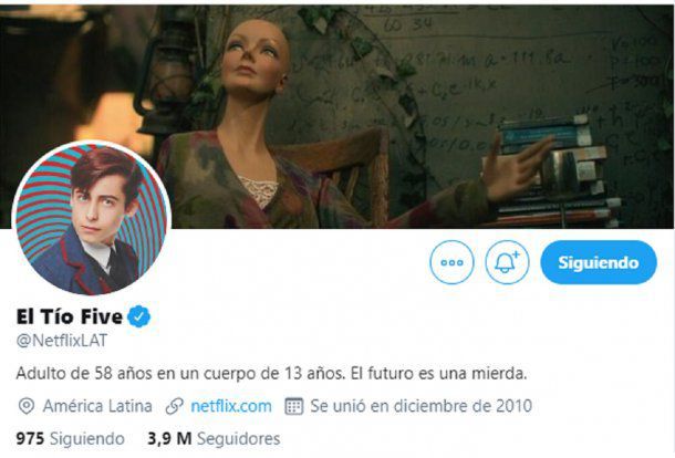 El supuesto hacker ingresó y cambió el usuario, la biografía y las fotos tanto de perfil, como de portada, de la cuenta. Ahora en lugar Netflix Latinoamérica se lee “El tío Five”. Además en la biografía puso: “Adulto de 58 años en un cuerpo de 13 años. El futuro es una mierda”.