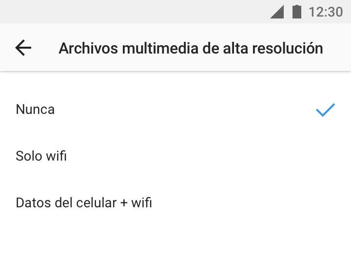 – Celular + WiFi: la aplicación mostrará archivos multimedia de alta resolución cuando el dispositivo esté conectado a datos del celular o a una red WiFi.