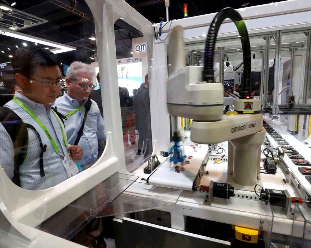 10- Robot industrial utilizado en la industria manufacturera, en plena tarea en CES 2019.