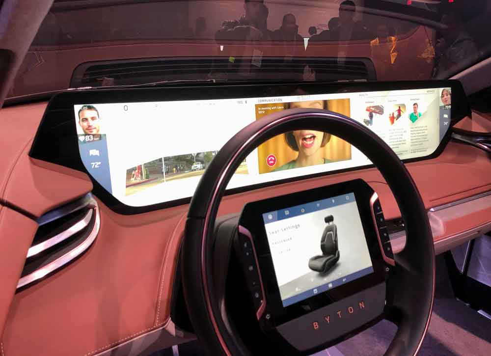 3- Interior del vehículo eléctrico Byte’s M-Byte, con una pantalla masiva.