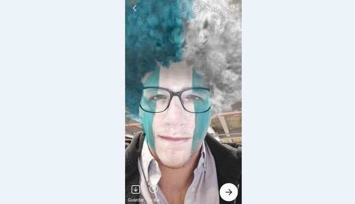 En las historias de Facebook y en los estados de Messenger uno puede "disfrazarse" de hincha de cualquier país. Con los efectos de realidad aumentada de las plataformas se pueden tomar fotos con pelucas, vinchas, banderines y maquillaje con los colores de Argentina (y también de sus rivales).