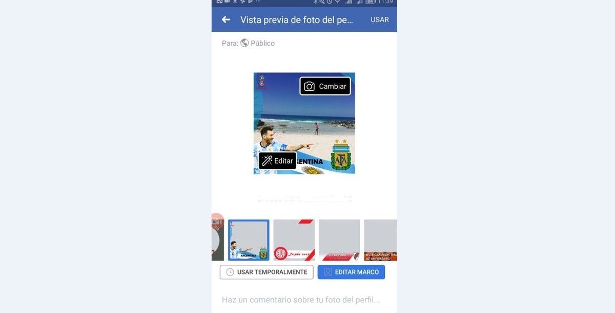 Facebook también sumó nuevos marcos para que la foto de perfil tenga los colores de la Selección. Ya hay uno con Lionel Messi. Además, el día del torneo aparecerá un mensaje en la parte superior del muro que permitirá actualizar la imagen con el marco de Argentina y los otros 31 equipos.
