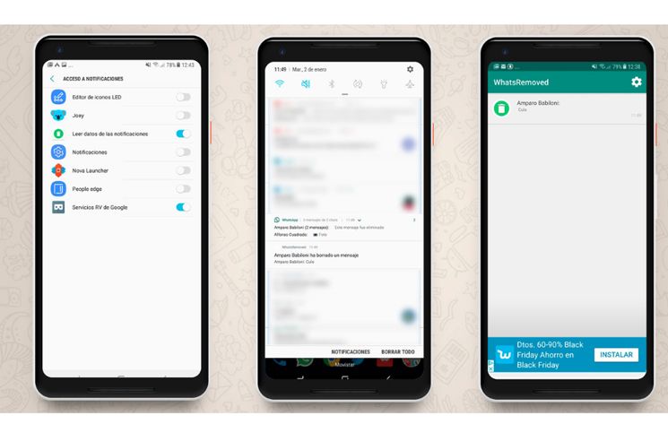 1. Descargar la aplicación denominada WhatsRemoved. Es gratuita, y está disponible en Google Play.