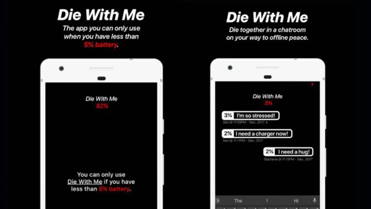 Ahora, llega la aplicación “Die with me” (Morí conmigo), que tiene un funcionamiento muy particular: solamente se activa cuando nos queda 5% o menos batería.