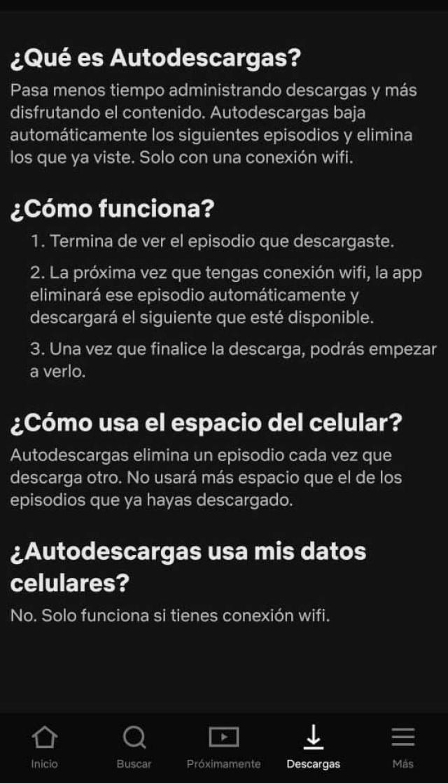 Netflix ha anunciado que de ahora en adelante las descargas de contenido serán automáticas, de modo que cada vez que un usuario termine de ver un capítulo descargado, la aplicación lo eliminará automáticamente y empezará a bajar el siguiente episodio en la lista de los que faltan por ver.