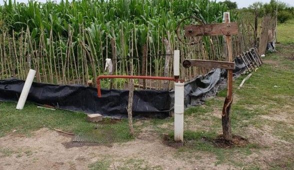 En el terreno de su casa armó, junto a su familia, una huerta donde tiene plantado: maíz, remolacha, acelga y chilca. Como el agua de su zona es muy salada para regarla, cavó un pozo de 6 mts de profundidad para extraer agua dulce y diseñó él mismo un sistema de riego por extracción con una rueda de bicicleta.
