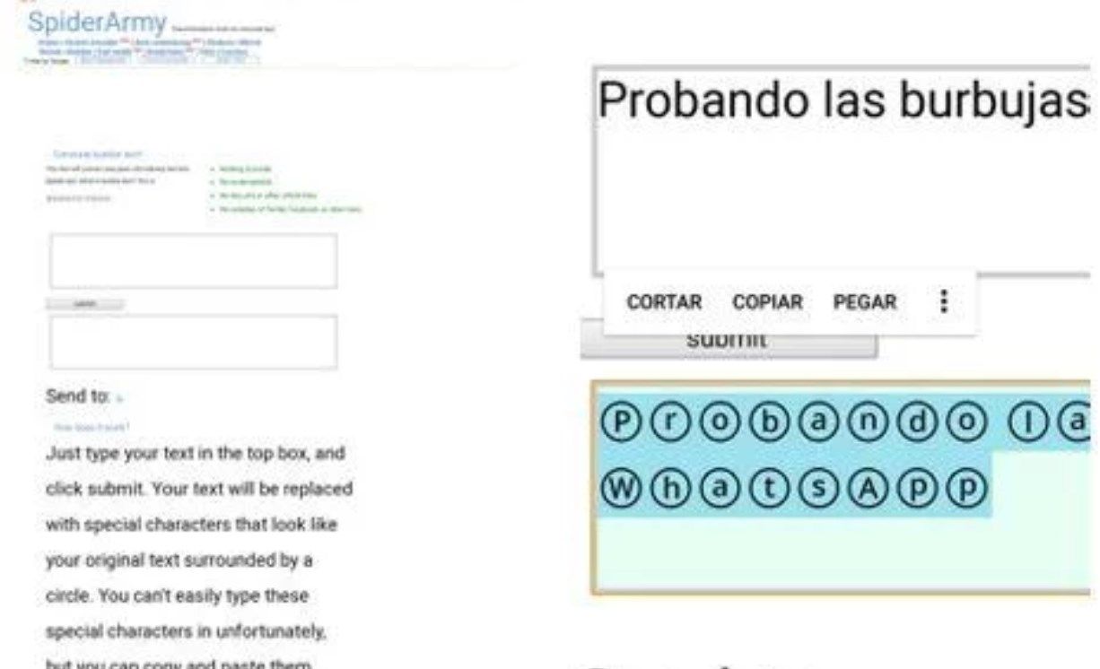 Sin embargo, con este truco podrás copiar y pegar con formato. El primer paso es ingresar a este enlace. En la primera caja de texto escribís el mensaje y después hacés clic en “Submit”. En la sección inferior aparecerán las letras con burbujas.