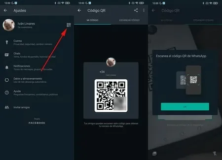 Ahora, en la parte derecha de la aplicación de mensajería aparecerá al lado de la foto de perfil y el nombre del usuario un símbolo de código QR.