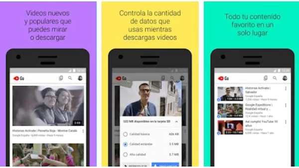YouTube Go es una versión de la aplicación principal que permite descargar los videos en redes Wi-Fi para evitar el consumo de datos de Internet en el teléfono móvil . A su vez, está optimizada para que pueda ser utilizada en dispositivos con poco espacio de almacenamiento, ya que solo ocupa 9,4 MB.