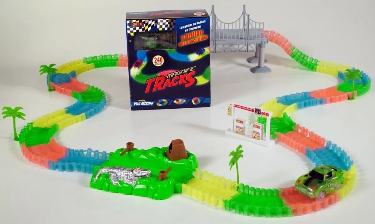 Pista de autos con encastre, con luces led que brillan en la oscuridad. Desde $2.190