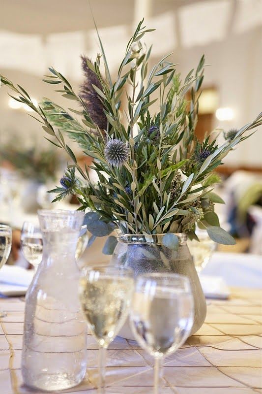 1. Jarrón con ramas: envuelve la mesa con un mantel blanco o de color claro y coloca en el centro un jarrón con algunas ramas secas. Si piensas organizar una cena para varios miembros de la familia, crea separaciones con distintos jarrones. ¡Lucirán de maravilla!