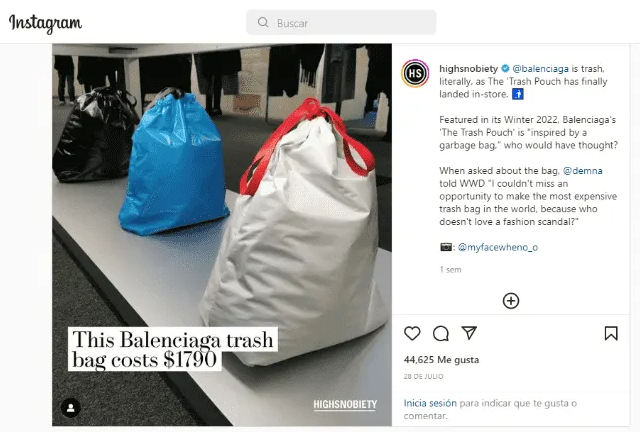 La marca global de medios de comunicación de moda y estilo de vida fundada en 2005 por David Fischer, High Snobiety, compartió una foto de la tienda en Instagram. Escribió: "Esta bolsa de basura de Balenciaga cuesta 1790 dólares".