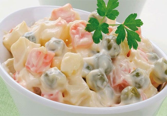 La ensalada rusa es una ensalada de papas muy conocida en América del Sur, se prepara con papas, zanahorias, arvejas o guisantes, manzanas, apio, cebolla y mayonesa.
