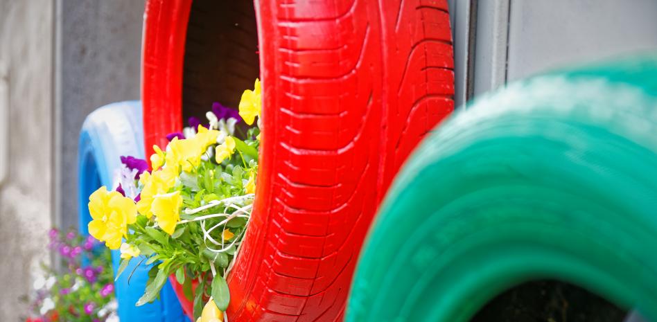 Macetas de exterior con neumáticos