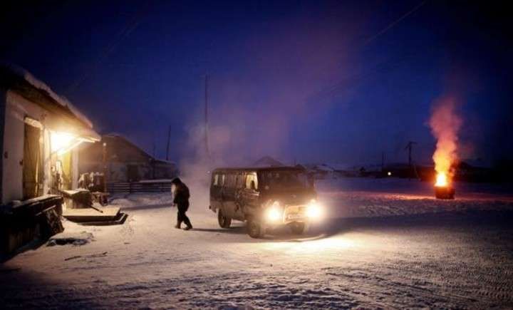 Con poco más de 450 habitantes en Oymyakon, uno no tarda en preguntarse cómo es posible vivir en un lugar donde la temperatura media en enero es de casi 50 grados negativos, donde el suelo está permanentemente congelado, donde los niños no van al colegio cuando el termómetro marca registros por debajo de los -52ºC (algo habitual de diciembre a marzo). “Siempre que pueden, los habitantes del pueblo permanecen adentro de sus casas”, explica Amos Chapple, un fotógrafo neozelandés que visitó Oymyakon a principios de 2013 para inmortalizarlo con sus fotos.