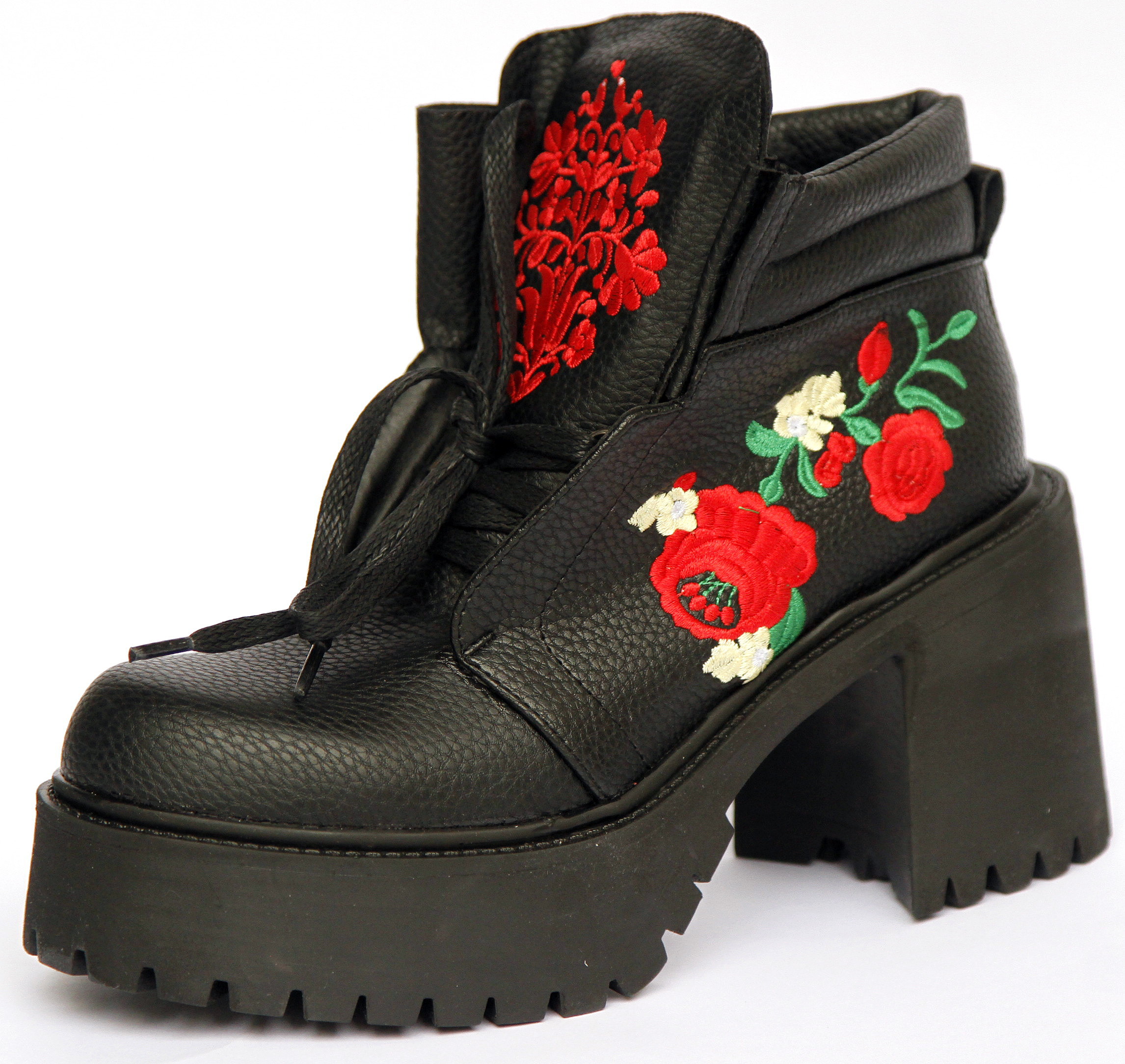 Borceguies de cuero con suela tractor y bordados de hilo de seda en los laterales y la lengüeta ($4.990, R.S).