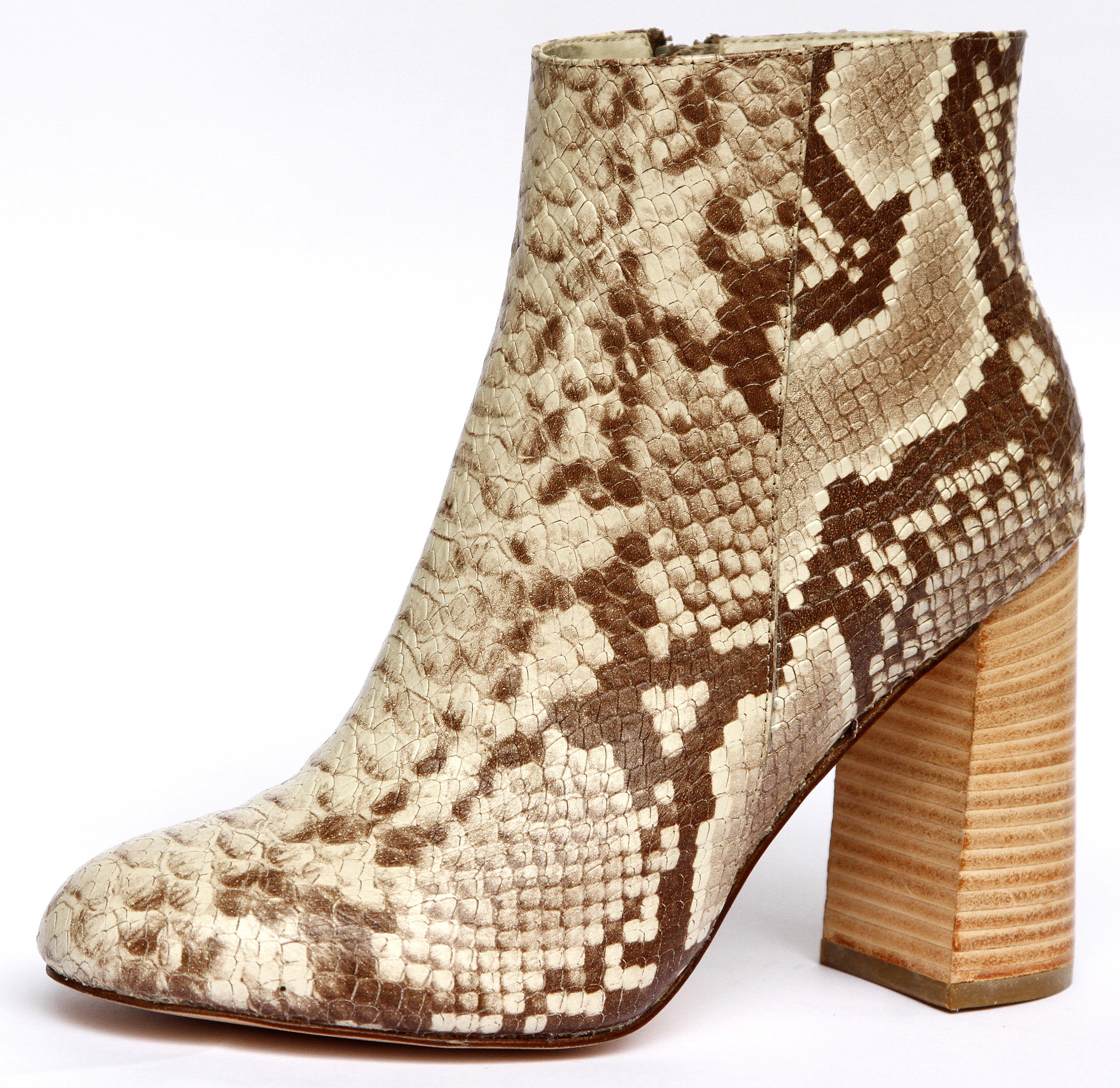 Botas caña media de crocco de víbora con taco de madera y punta redonda ($4.990, R.S).