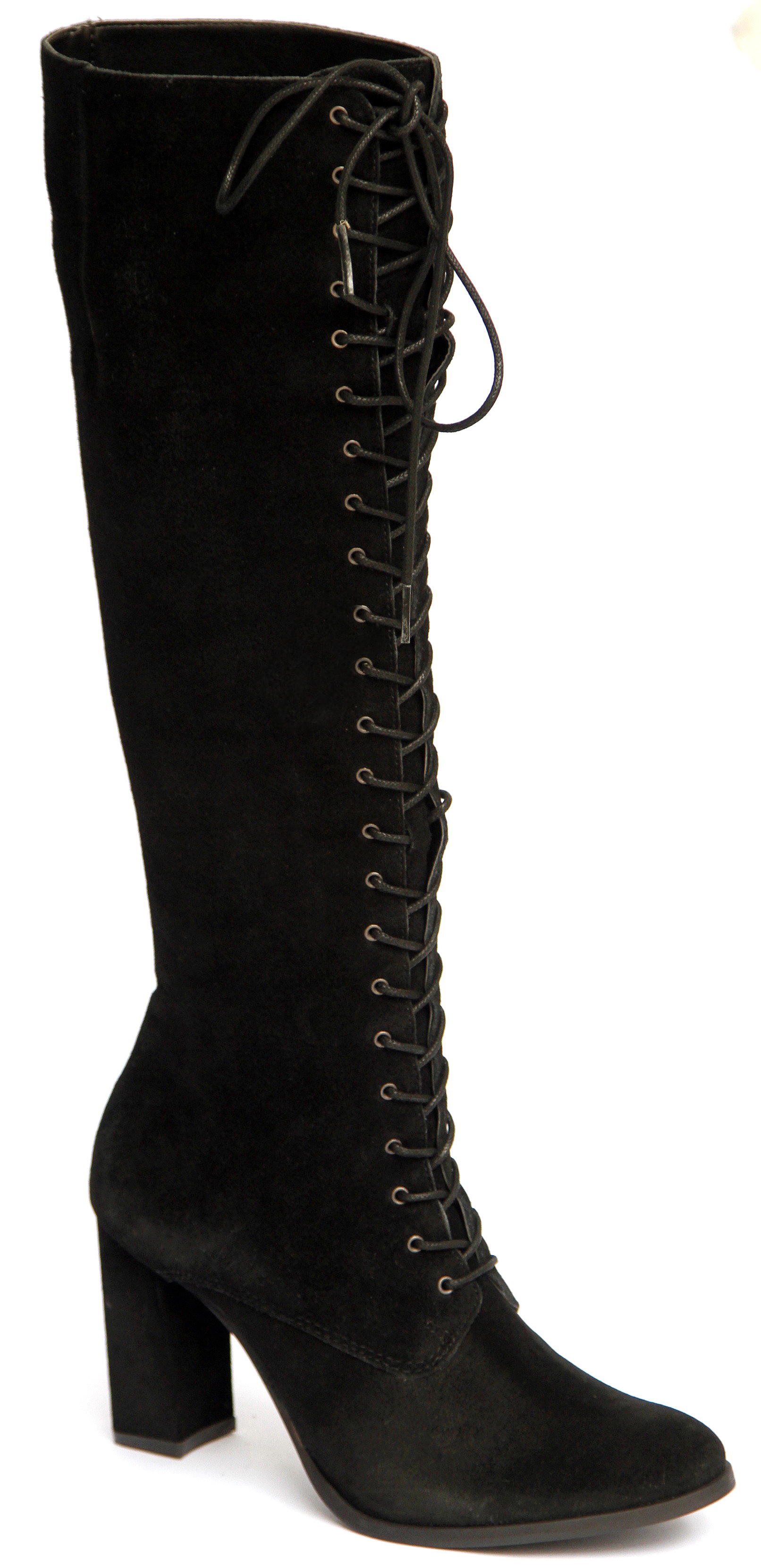 Botas caña completa de gamuza con la punta redonda y la pierna encorsetada ($4.890, R.S).