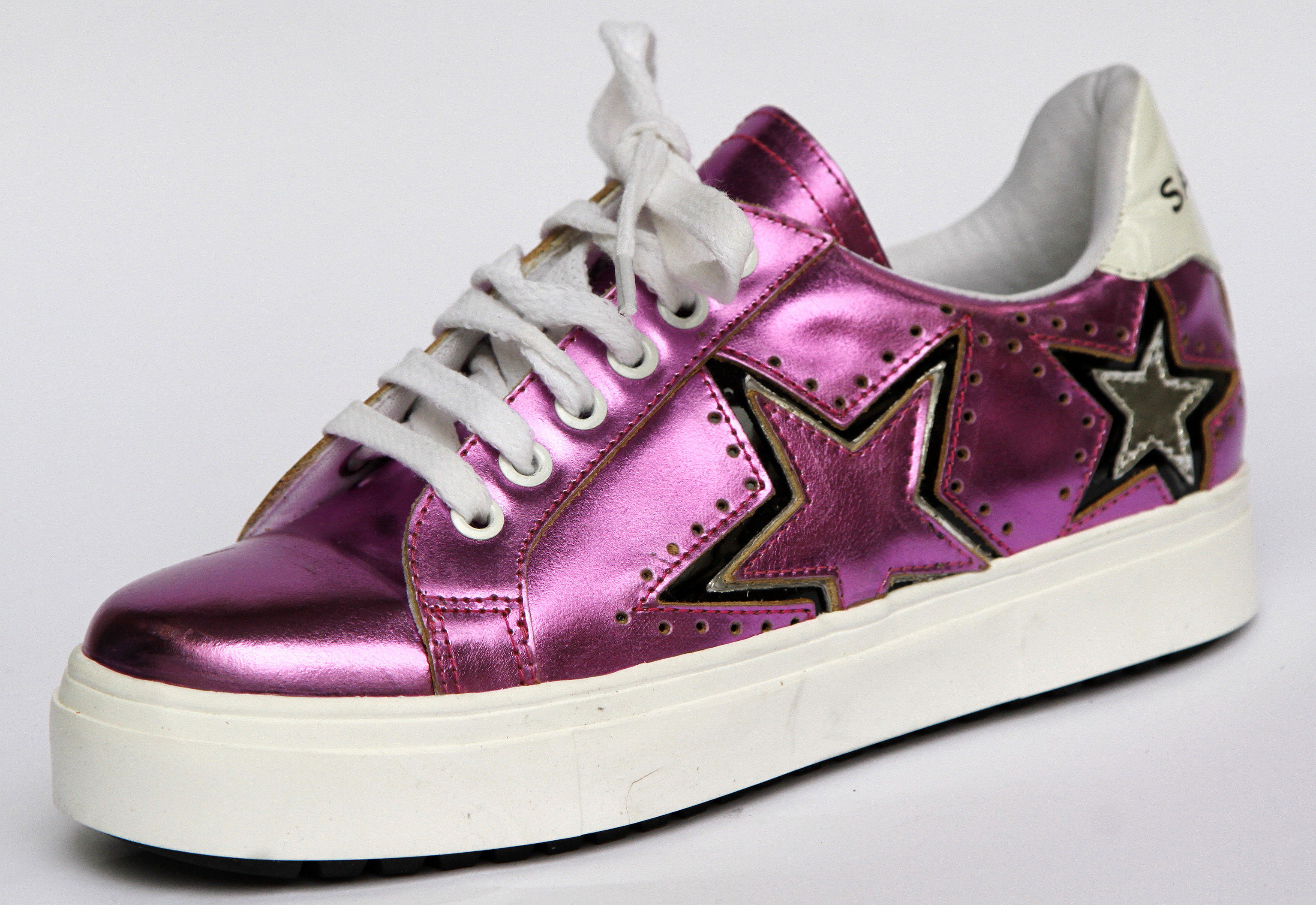 Zapatillas de cueros opaco y metalizados con cordones, pespuntes y estrellas en los laterales ($3.390, R.S).