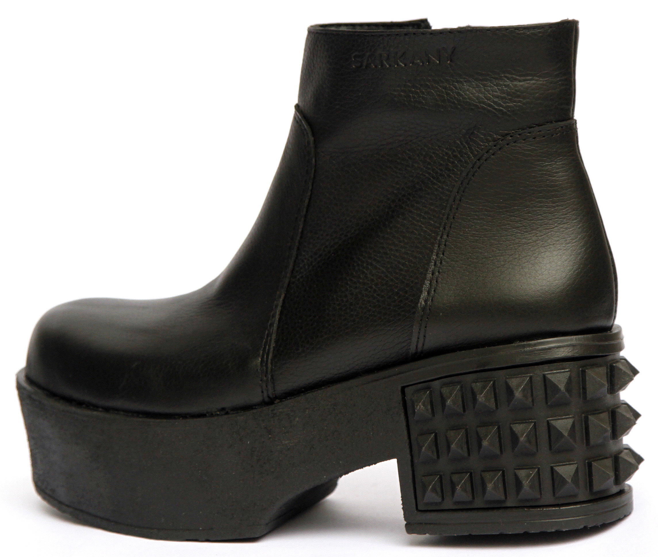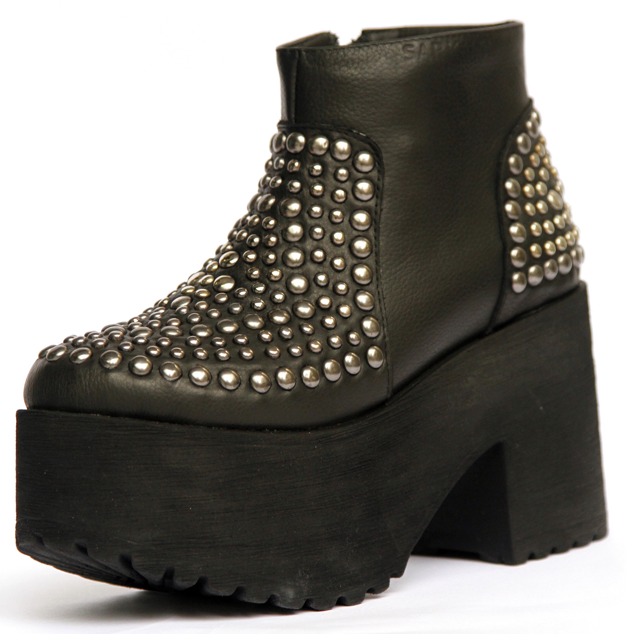 Botinetas con suela tractor y plataforma con los talones y el frente completamente revestido con tachas ($4.150, R.S).