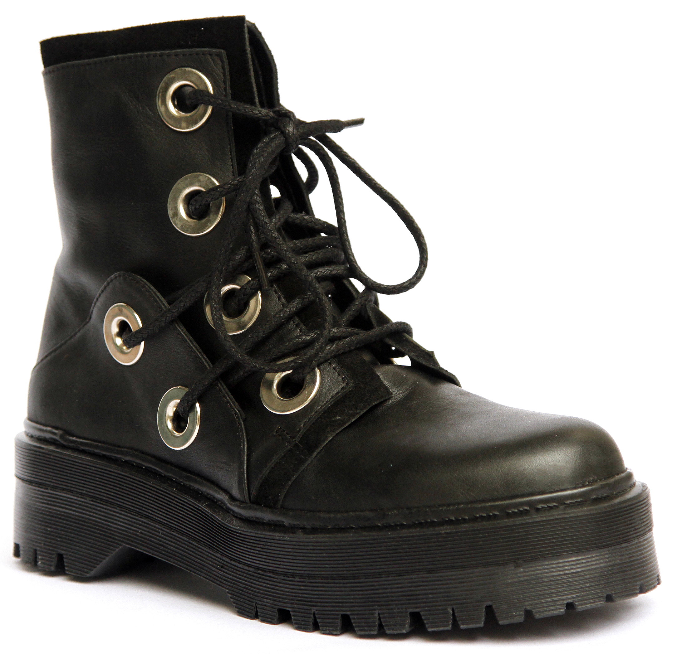 Borceguies de cuero de oveja y gamuza con ojalillos de metal, cordones y suela de goma ($5.200, R.S).
