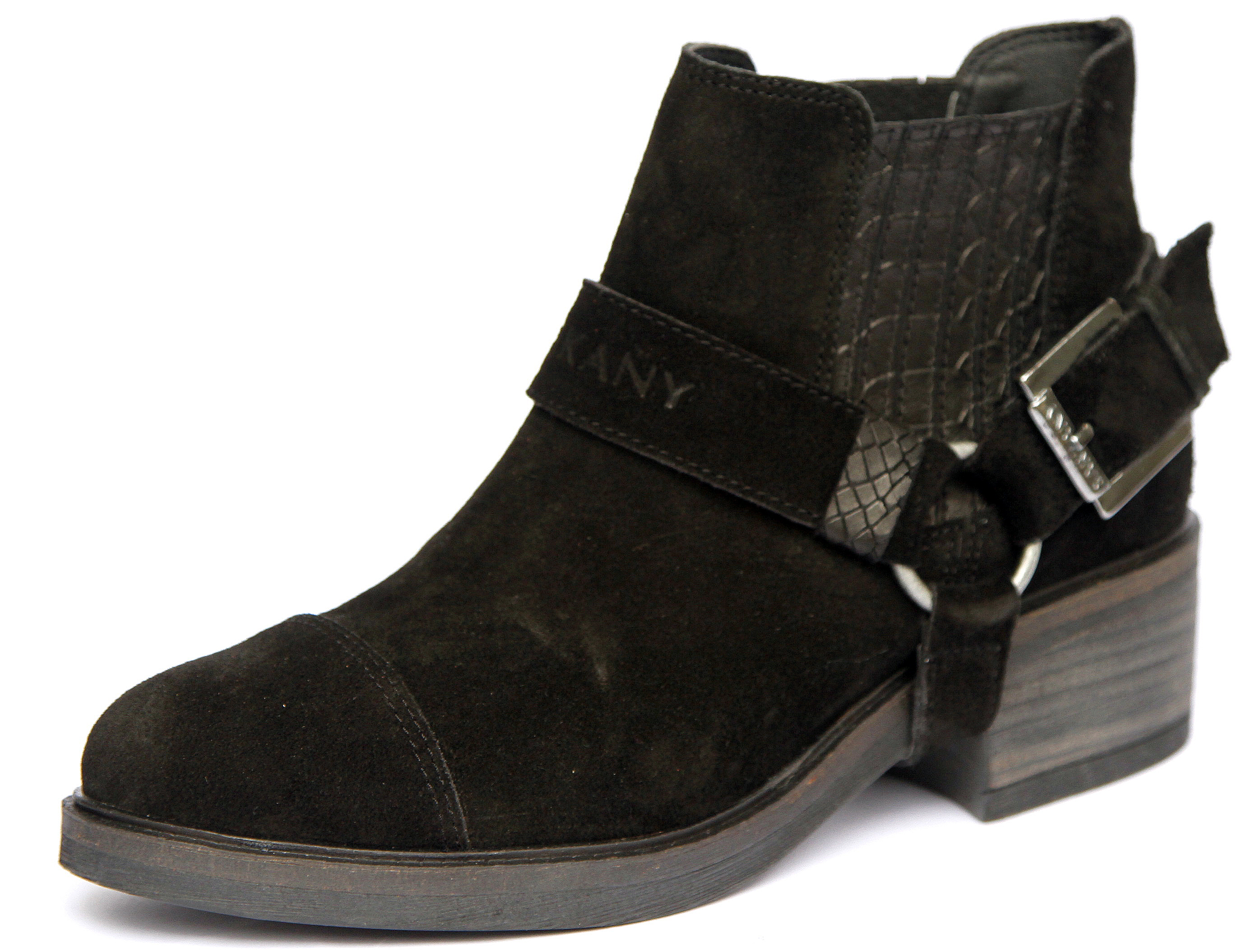 Botinetas de gamuza y crocco tipo texana con elásticos latearles y cinto cruzado ($3.790, R.S).