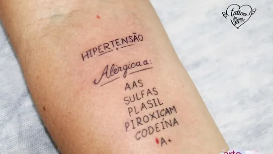 Cada vez son más los tatuadores en todo el mundo que se ofrecen a tatuar gratis alguno de los datos médicos a las personas que tengan alguna alergia o padezcan alguna enfermedad que los médicos o las personas que los auxilien tengan que saber para darles la atención adecuada. Así, ayudan a que no se utilicen medicamentos que les puedan hacer daño o algún proceso que pueda poner en riesgo su salud.