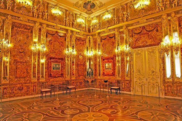Es una famosa obra maestra del siglo XVIII que desapareció durante la Segunda Guerra Mundial. Estaba construida con paneles de ámbar, láminas de oro y piedras preciosas. En principio fue para el rey de Prusia Federico I, luego fue propiedad del emperador ruso Pedro I el Grande en el año 1716. Durante el conflicto, las tropas alemanas se llevaron toda la decoración del palacio Tsárskoe Seló, aunque en abril del año 2000 el ministro de Cultura de Alemania, Michael Naumann, entregó algunos fragmentos al presidente de Rusia, Vladmir Putin. Del resto de la sala, no se sabe nada.