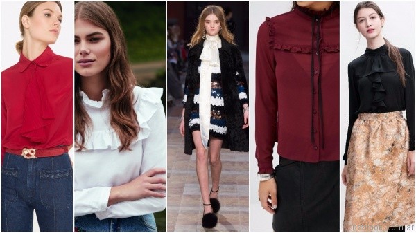 Blusas de estilo victoriano: Diseños de cuellos subidos, encajes y blondas en las mangas.