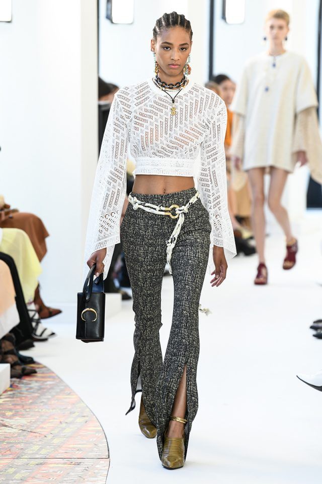 Unos días más tarde, esta vez en París, Natacha Ramsay-Levi hacía lo propio en Chloé. Dos de sus pantalones contaban con sendas aberturas frontales en sus bajos acampanados. En efecto: tendencia confirmada.