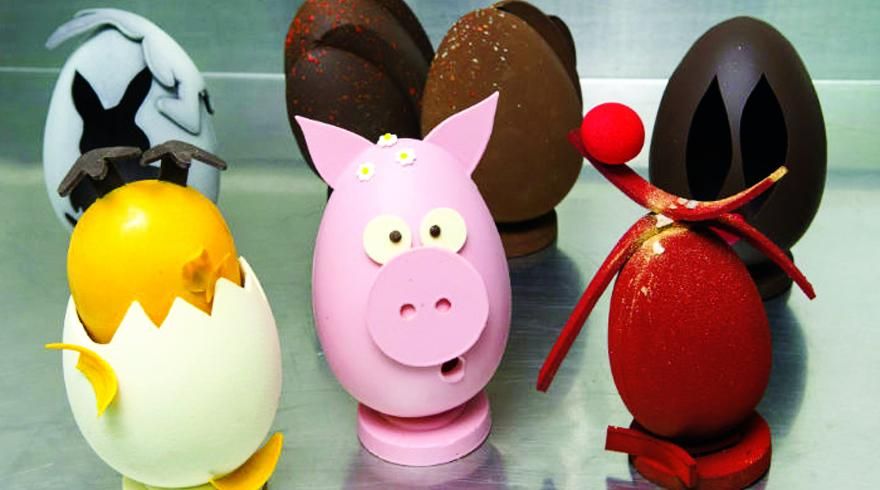 Inspirados en películas,  figuras de animales y dibujos animados, los pasteleros crean destacados y originales huevos de pascua. También existe la libertad de crear “figuras de huevos descontracturados, desplazados o huecos”, como si fueran esculturas.