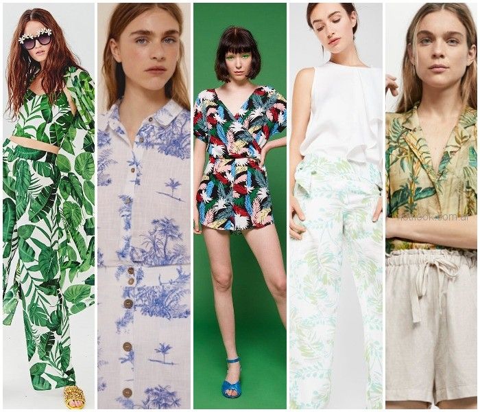 Follaje exhuberante: hojas de plátano, hibisco, aloe vera; terrenos oscuros, bronces extraños, colores extraños; impenetrables copas de árboles que evocan la Amazonia o Asia. Los diseños selváticos y tropicales con variantes en hojas y frutos se apoderan de la temporada veraniega.