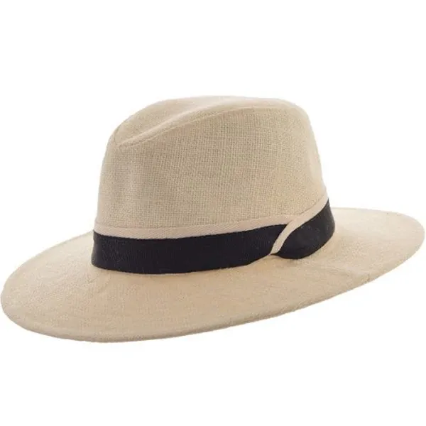 Por lo general tienden a ser en rafia, yute o símil rafia tipo australiano. Se termina con cinta hilera natural y cinta de gross negra. Cómodo y fresco, es ideal para días de sol en terrazas, caminatas y playa. El ala de este modelo es de 8 cm y la altura de la copa de 9 cm.