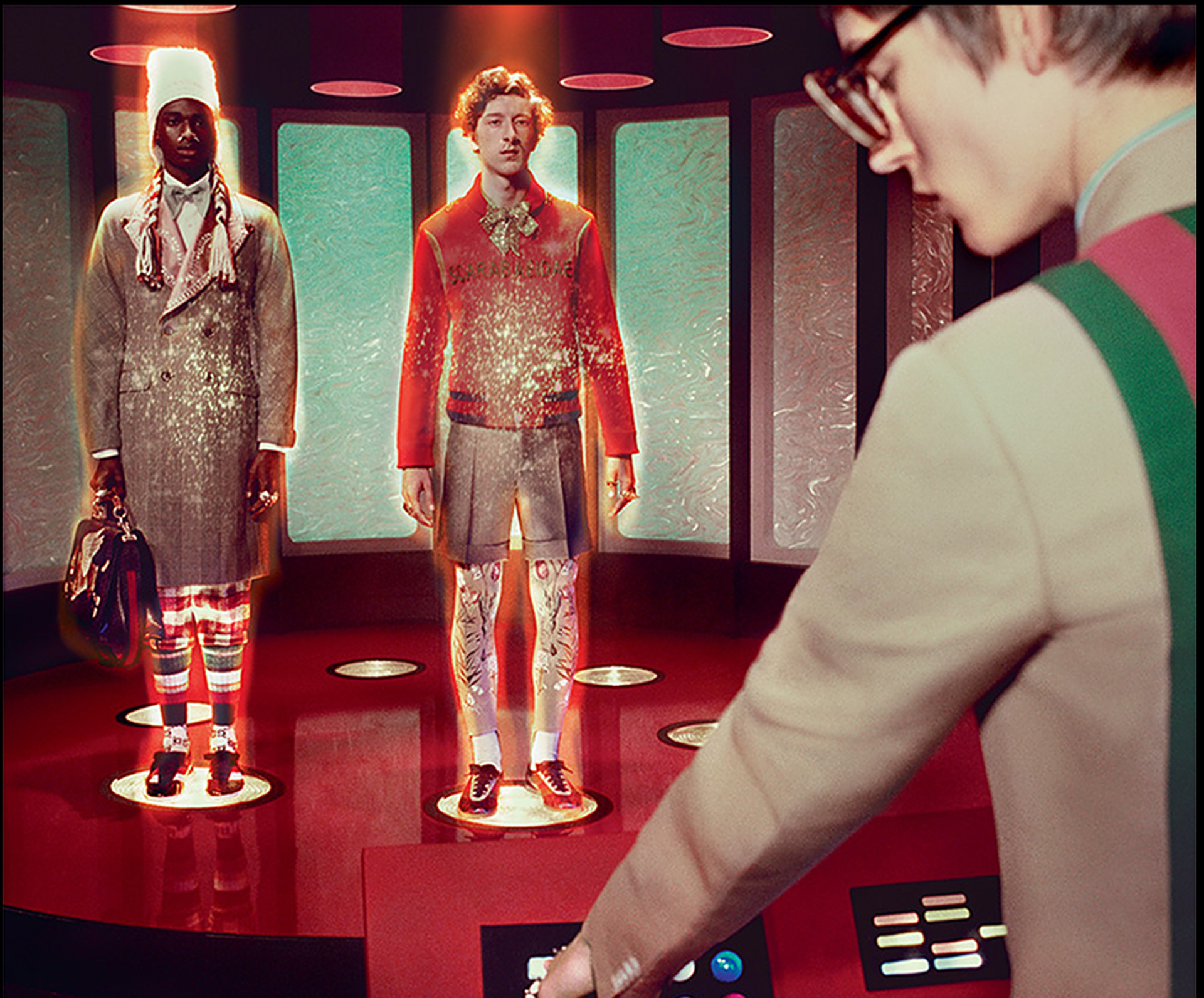 El diseñador de Gucci Alessandro Michelle ideó esta increíble campaña, en donde los humanos se teletransportan al imaginario retro-nostálgico, incluyendo el escenario donde se filmó la serie de Star Trek (Gucci).