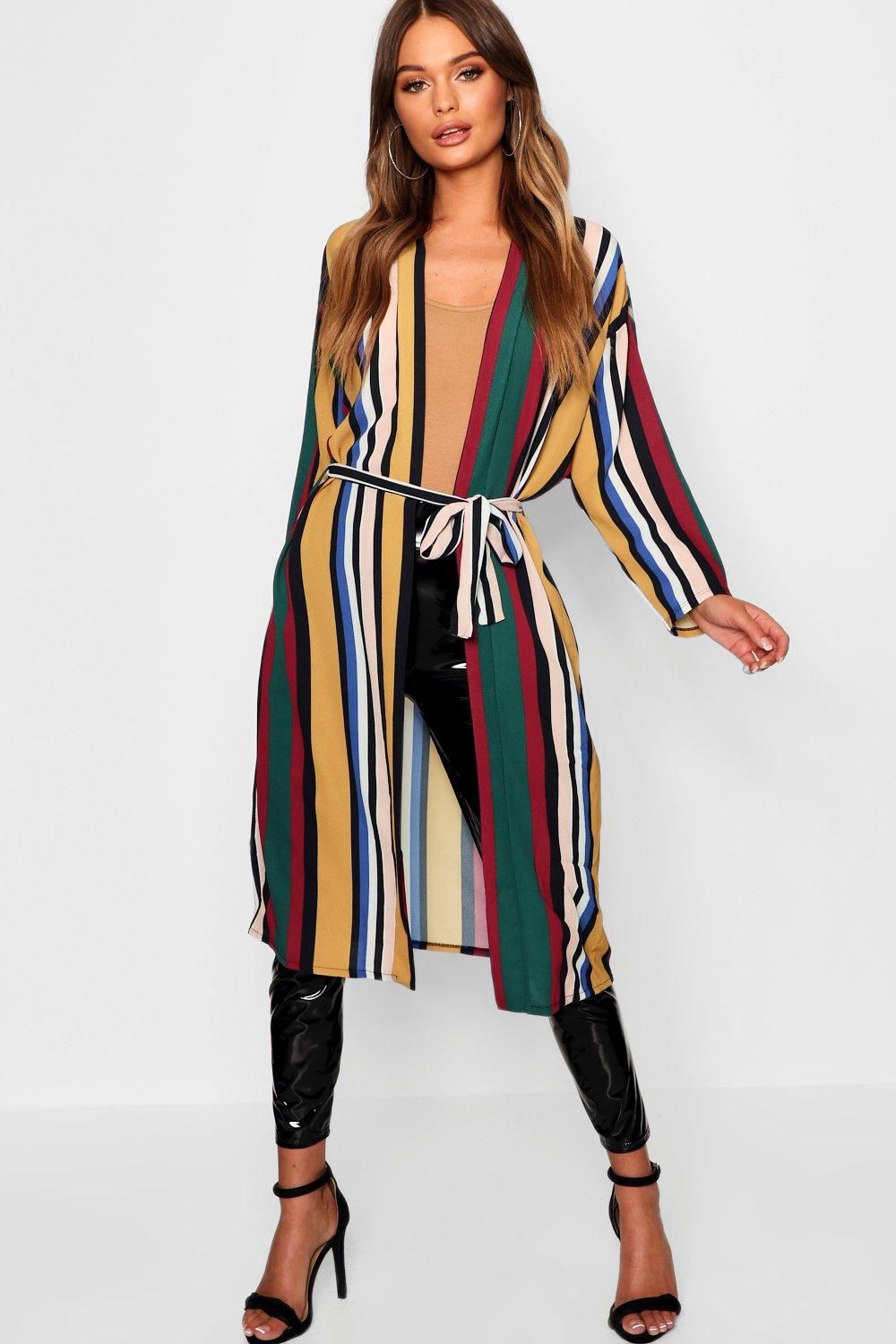 * Cinturón. Es un accesorio que va muy bien con esta prenda. Si se usa con jeans, se debe procurar tener un cinturón delgado para que divida el cuerpo de manera visual. En cambio, si se quiere agregar un poco de elegancia al estilo, se puede probar con colocar el kimono afuera del pantalón.