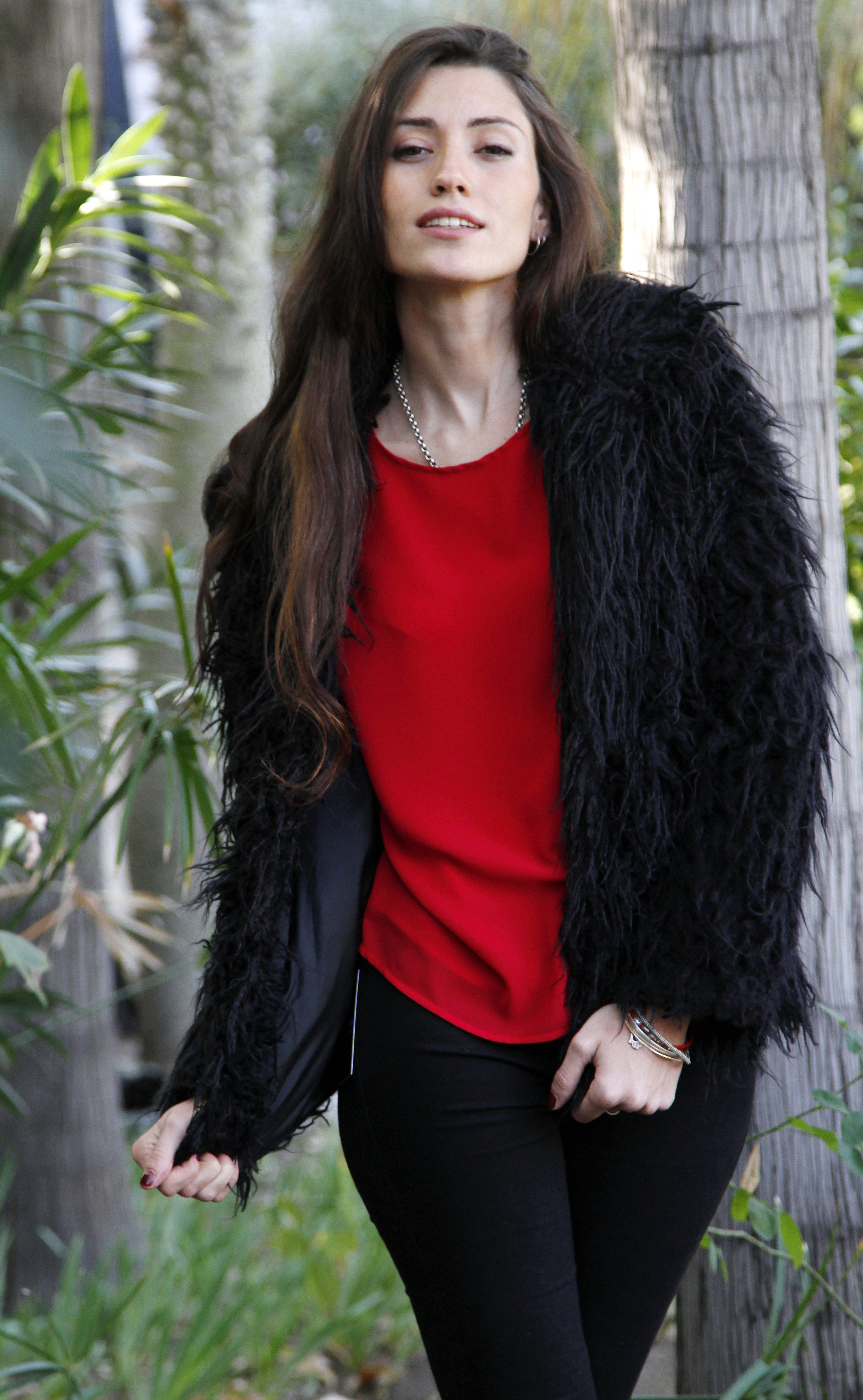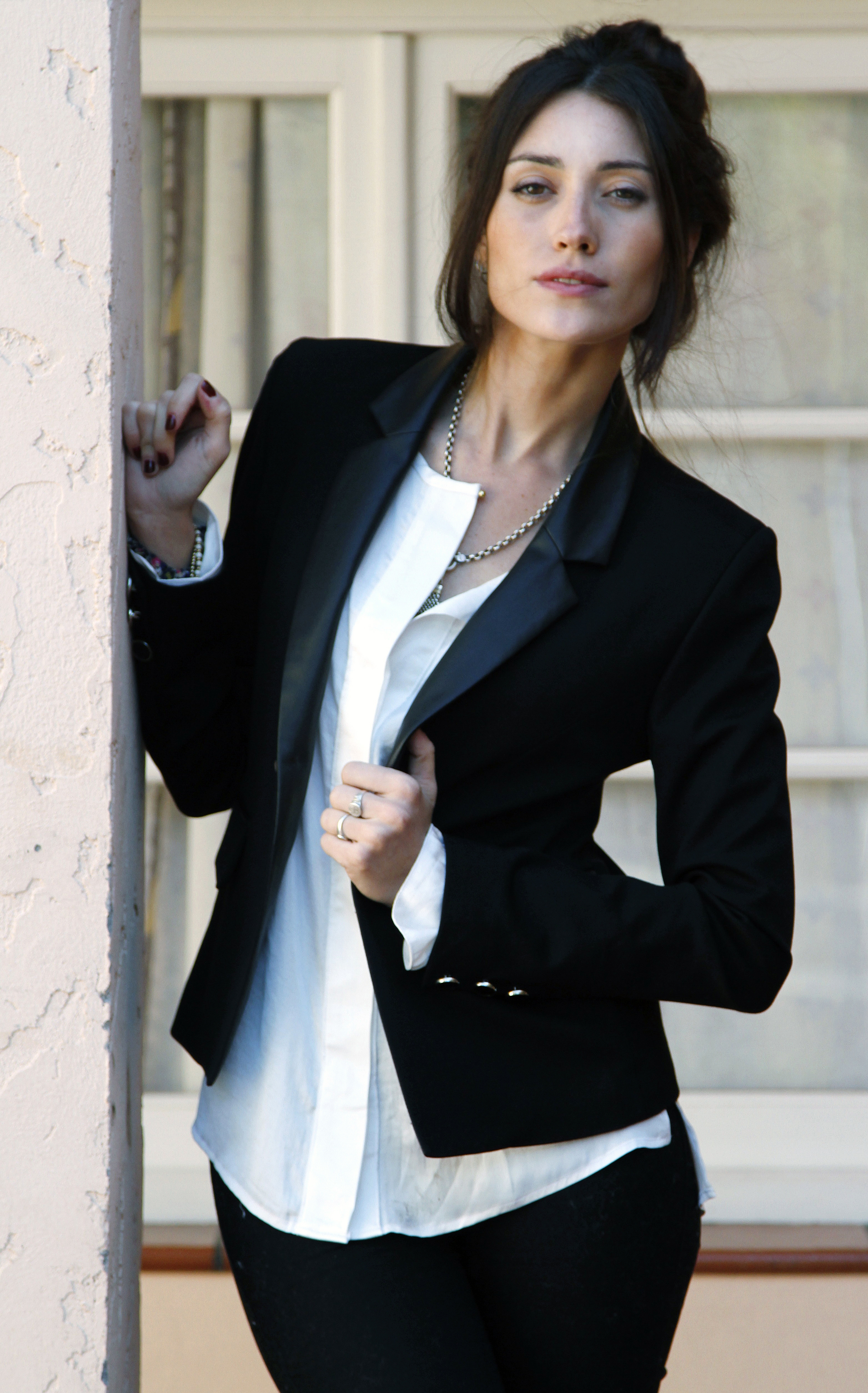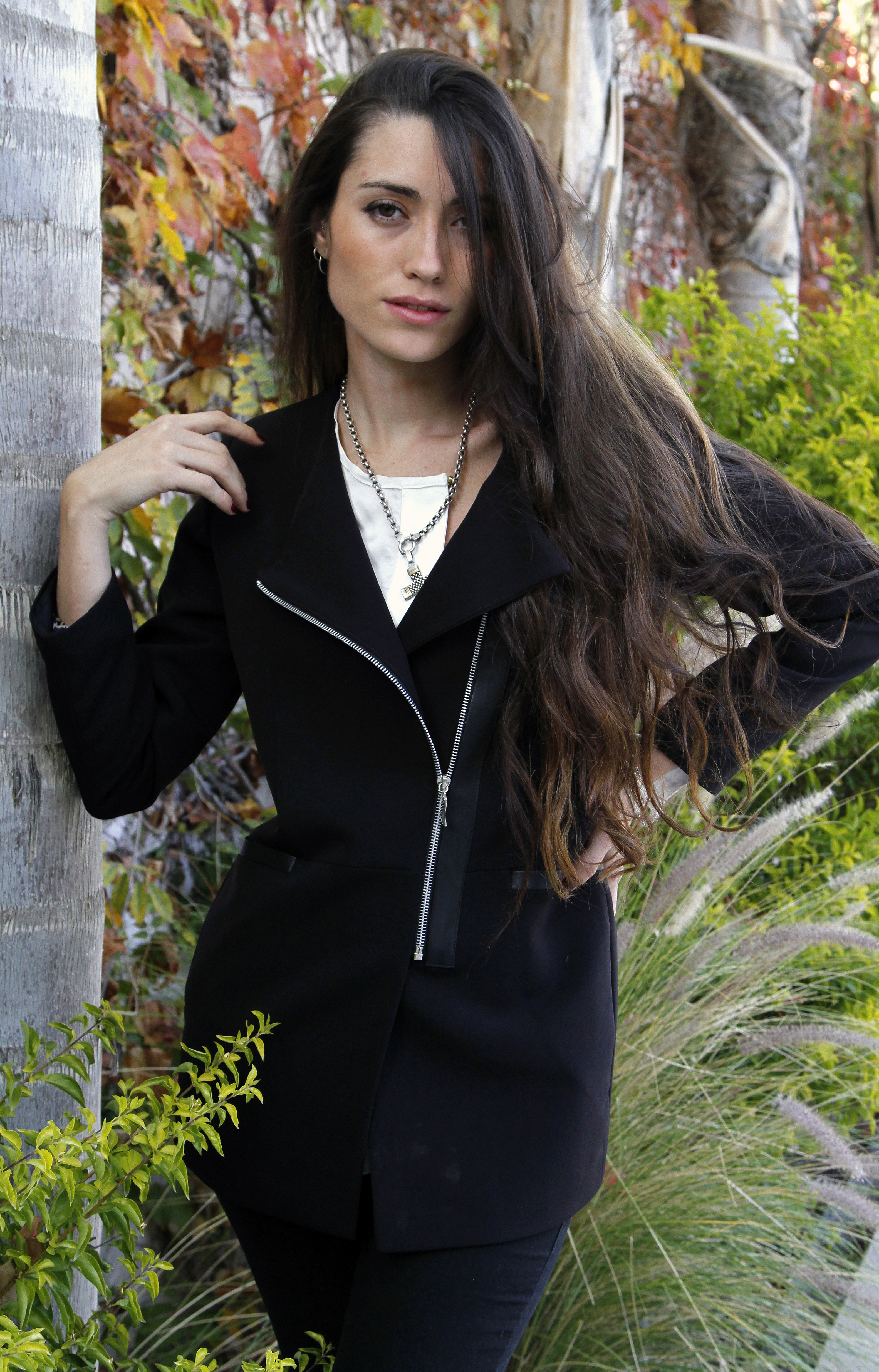 Levita de crepé con detalle de cierre y símil cuero, $3.800