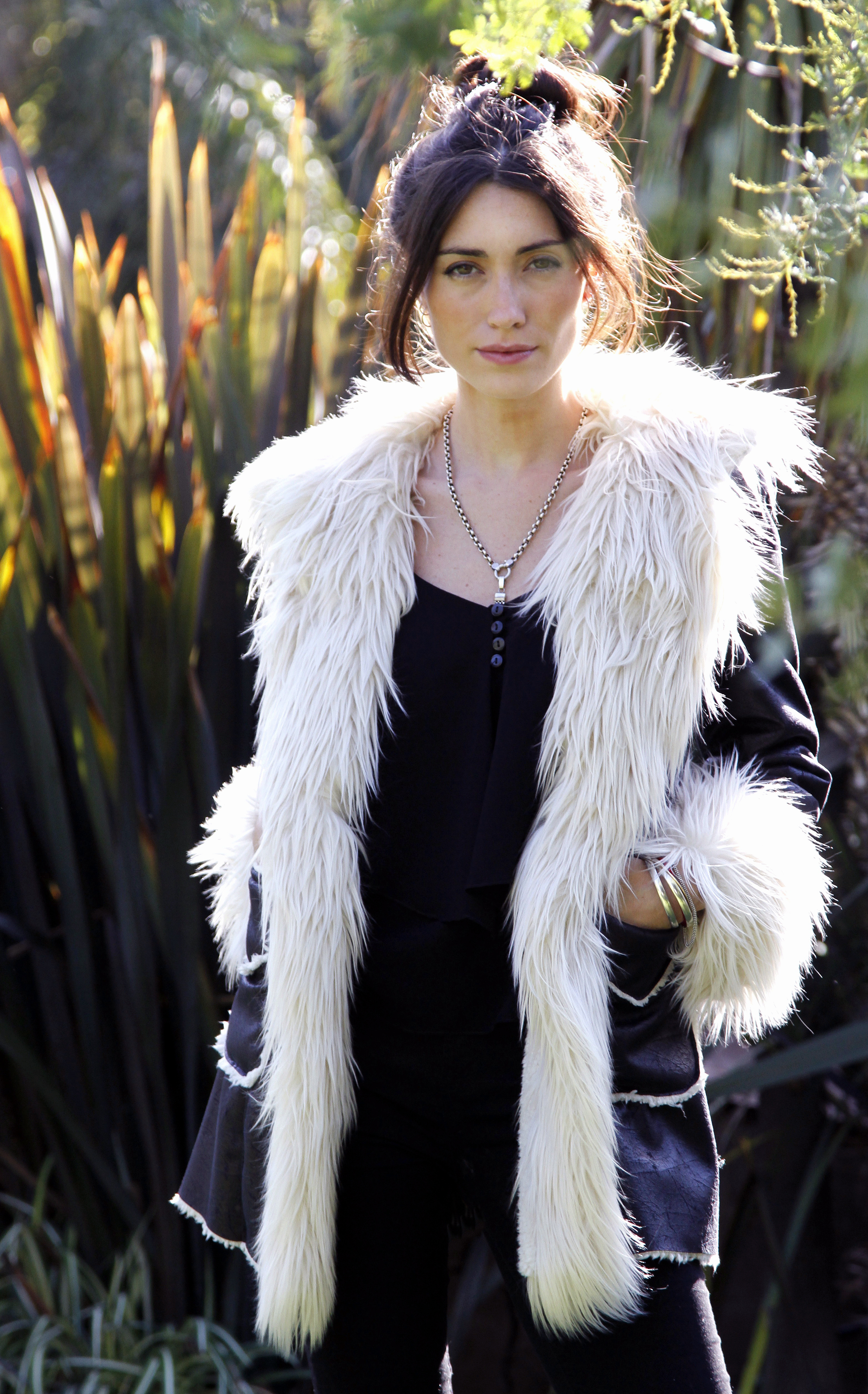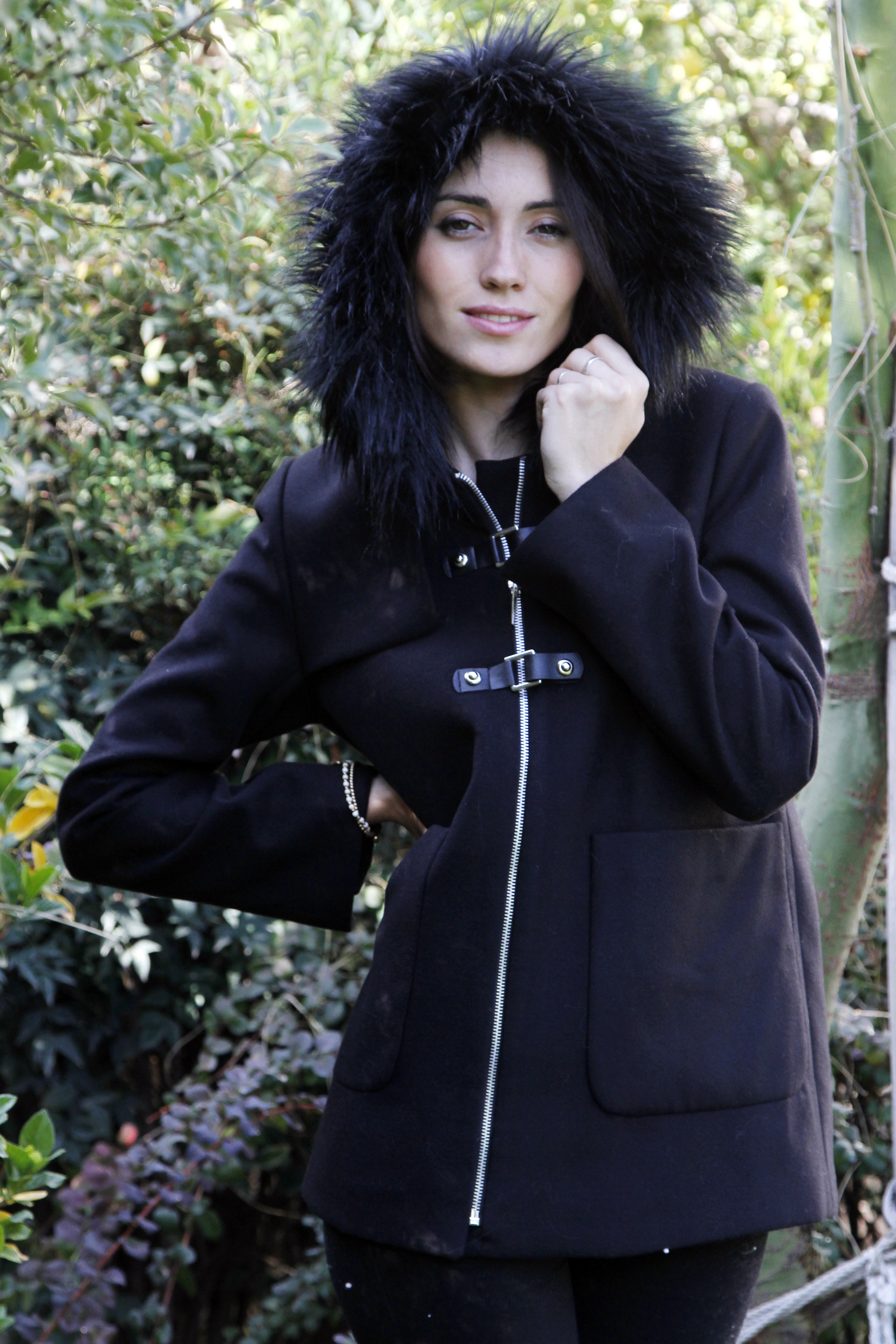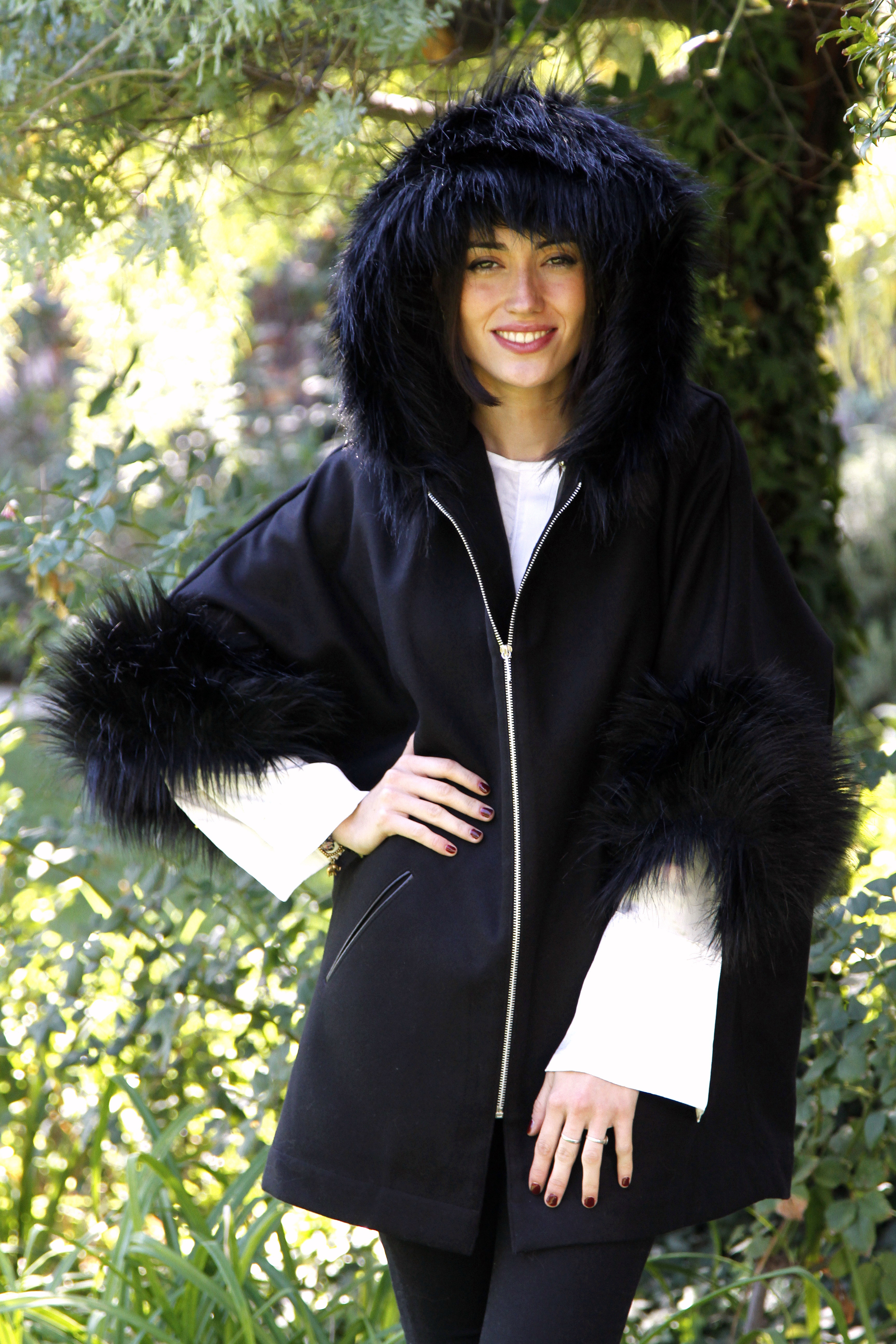 Trenka de paño, con detalle de broches y cuello desmontable con piel, $5.000