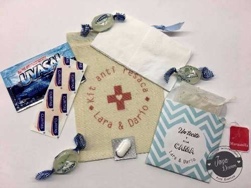 El souvenir pasó de moda, pero aún así muchos optan por ofrecer un detalle al final de la fiesta, mucho más divertido y descontracturado. Por ejemplo, la revista OHLALÁ cuenta que ahora muchos optan por ofrecer un kit para el día siguiente, con anteojos negros, un saquito de café y algunos analgésicos para la resaca.