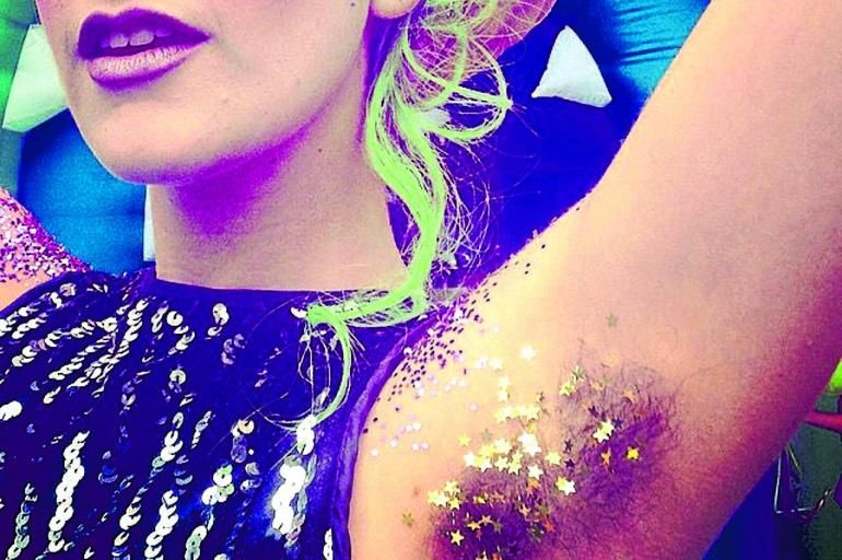Axilas decoradas con escarcha: es una de las modas virales más recientes y cobró protagonismo a través de Instagram. Mujeres jóvenes han mostrado en esta red fotografías de sus axilas (depiladas o peludas) llenas de escarcha de diversos tonos. Su creadora fue la bloguera inglesa Sophie Hannah Richardson, quien bautizó la moda como ‘glitter armpits’ y la lanzó en su cuenta de Instagram invitando a sus seguidoras a no afeitarse y a ponerse escarcha para disimular.