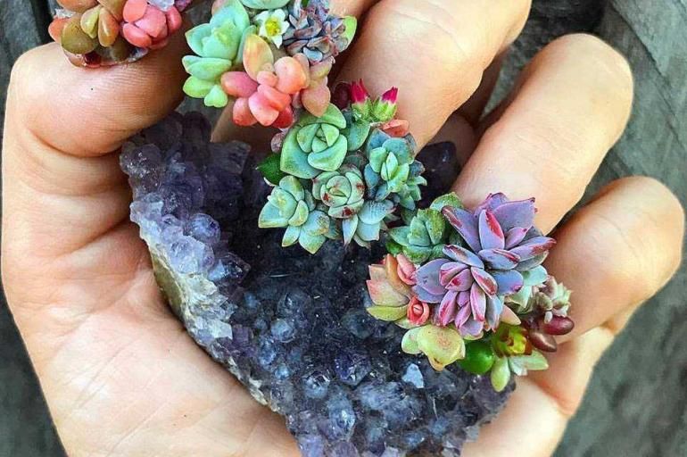 La moda de decorar las uñas con plantas: la marca botánica australiana Arozona pega pequeños arreglos de flores y plantas en uñas postizas que luego pone a sus clientas.