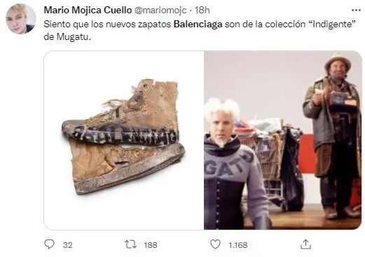 La gran mayoría de los internautas se mostraron indignados y sorprendidos con la decisión de la reconocida empresa. "Tengo la absoluta certeza de que Balenciaga está haciendo un experimento social de cuanto es lo más que está dispuesto a gastar un pendejo en algo culerisimo", escribió un usuario de Twitter.