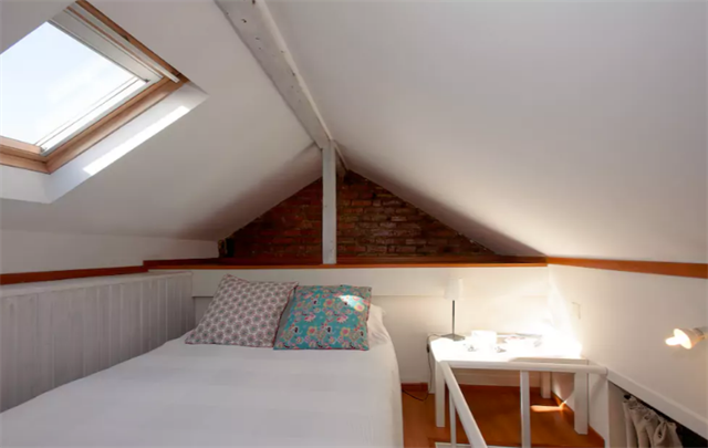 Nada más encantador que dormir en un ático con los techos inclinados y las ventanas que saludan a la ciudad. Este además tiene una terraza, vista espectacular y está en un edificio antiguo.