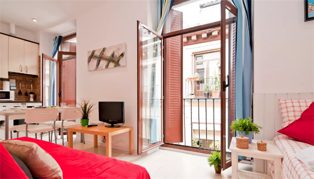 Con una excelente relación precio-calidad, este departamento para cuatro personas ya tiene casi 300 reseñas de huéspedes. Poco espacio pero muchísima luz que entra pro sus dos ventanales.