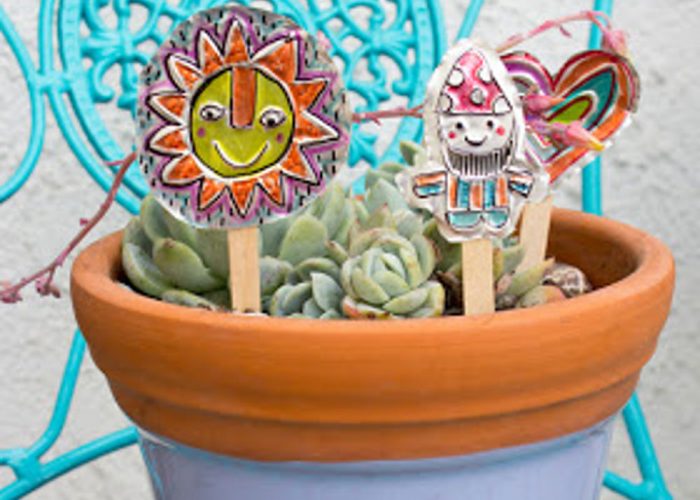 A continuación sólo tenéis que elegir la figura decorada y pegarla a un palito de helado. Y una vez haya secado, ¡ya está listo para decorar vuestras macetas!