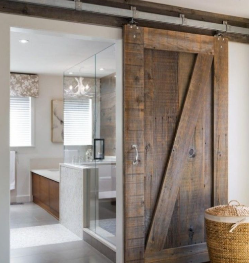En ambientes pequeños, este tipo de puertas corredizas es clave para aprovechar el espacio y cada rincón, así como también para ocultar aparatos electrónicos y mantener en orden espacios de guardado. También se pueden ver estas puertas granero en los lavaderos que dan lugar a un práctico y atractivo mobiliario.
