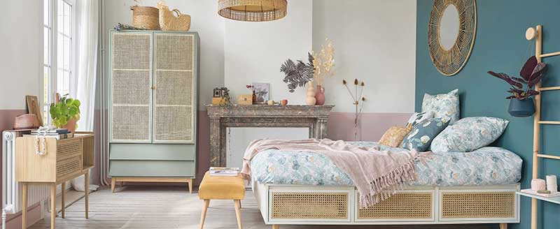 Si quieres incluir un mueble con rejilla en la decoración de tu casa, puedes empezar por el dormitorio. Un cabecero de rejilla aportará textura y combina a la perfección con cualquier estilo que quieras darle a tu cama.