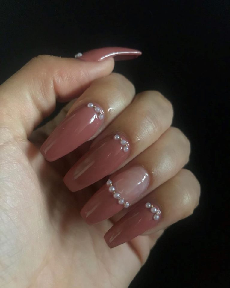 Las perlas pueden llevarse en todas las uñas o solo en algunas, combinadas con otros apliques como cadenas, piedras o cristales. Quedan bien con base nude, blanca, en colores neutros o rojo.